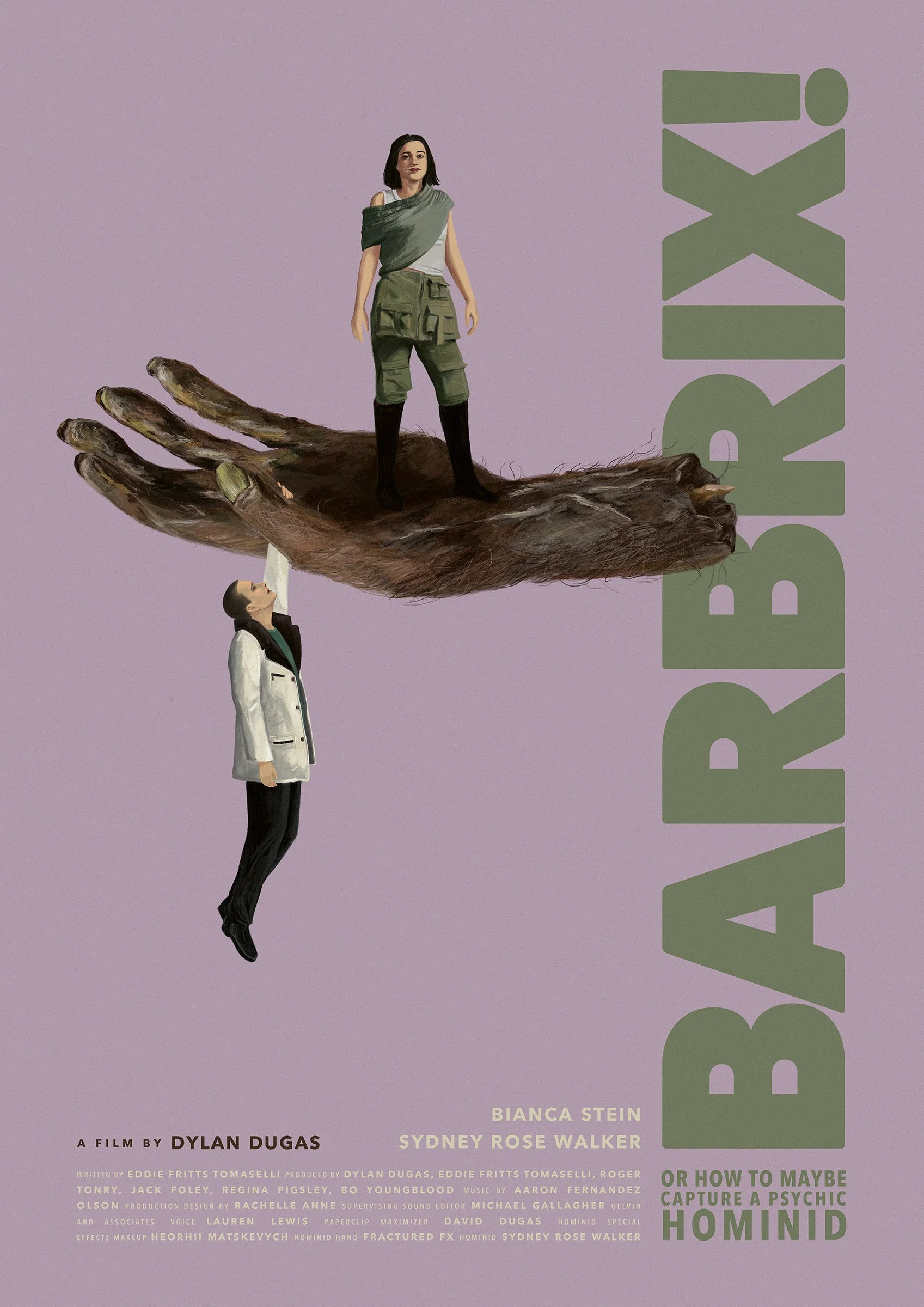 Poster for Barbrix! or How to Maybe Capture a Psychic Hominid (2025). Directed by Dylan Dugas. Illustration by Sara Kern Gacesa.